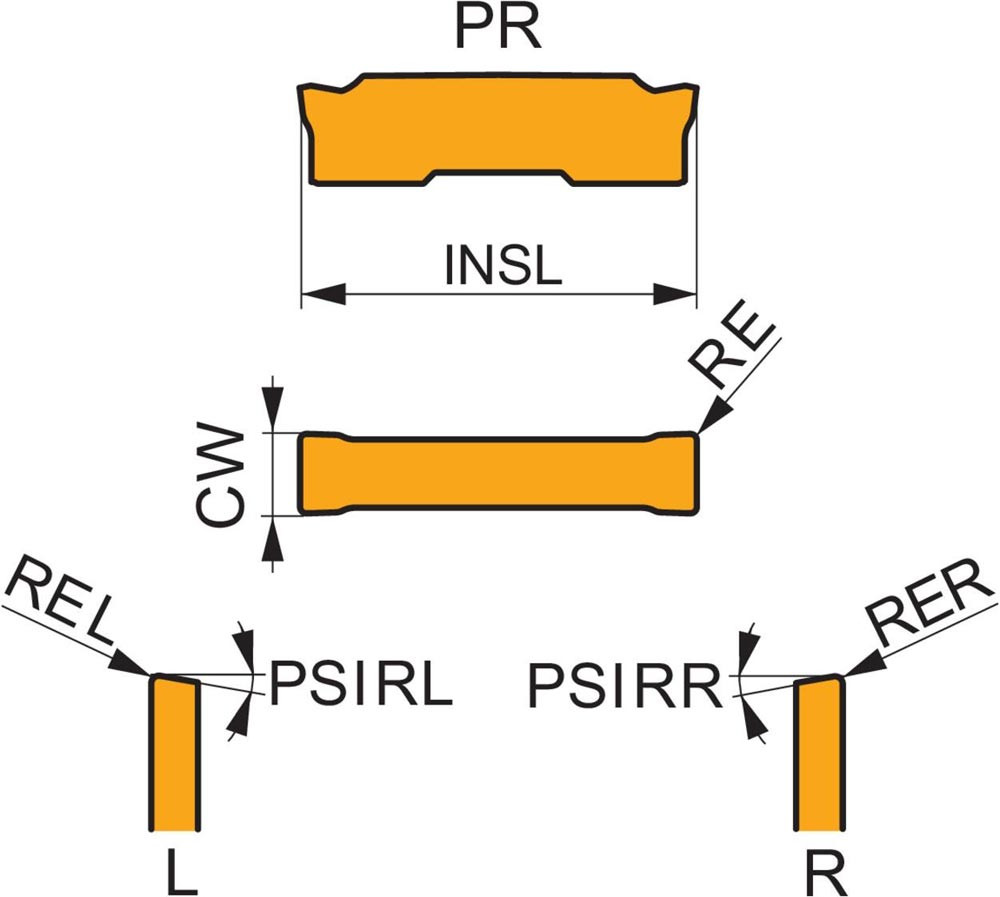 Wendeschneidplatte ISO GL4-D400G02L12-PR:G8330 Schnittbreite 4mm PVD beschichtet Farbe Gold