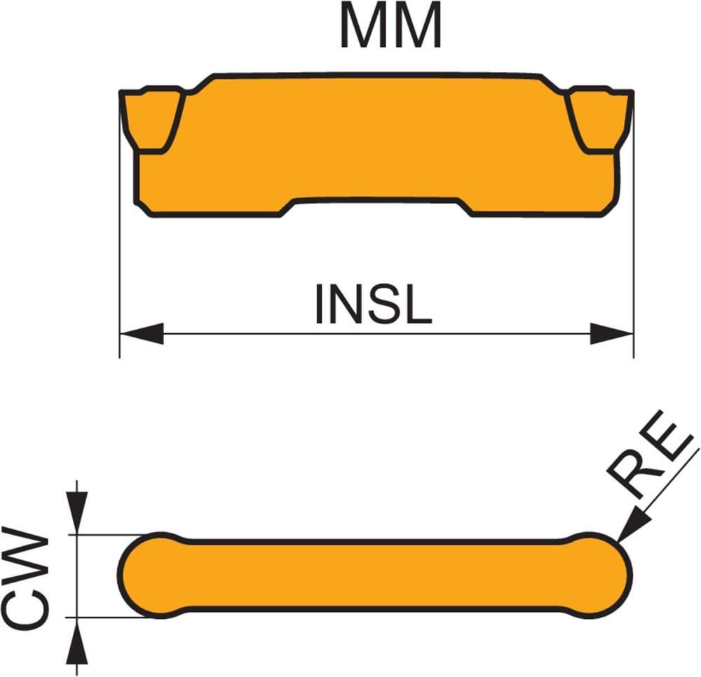 Doppelseitige Wendeschneidplatte zum Ein- und Abstechen · 26 mm lang · mit einer Schnittbreite von 6 mm und einem Vollradius von 3 mm und eine Schnittbreitentoleranz von ±0,05. Sorte T7325 MT-CVD-beschichtetes · funktional abgestuftes WC-Co-Hartmetall innerhalb der ISO-Sortenbereiche M10–M25 und K15–K25 für die Bearbeitung von Edelstahl und Gusseisen. MM Geometrie · Vollradius zum Kopieren und Längsdrehen · bei kontinuierlichen bis unterbrochenen Schnitten.