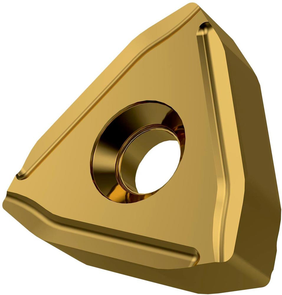Doppelseitige negative barpeeling Wendeschneidplatte · Triangular mit Innenkreisdurchmesser von 28.6mm · 10mm Dick für 2.5mm Schnitttiefe · Indexgenauigkeit nach ISO-Toleranzklasse-G · Spanbrecher PF mit S01 Schneidkantenpreparation · im Substrat T9226 · MT-CVD beschichtet funktionell abgestuftes WC-Co-Carbid im ISO-Bereich P15 -P35 · zum hohe Festigkeit Stählen
