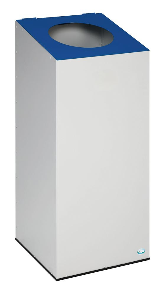 Wertstoffsammler, Stahlblech, Vol. 100 l., Klemmring, BxTxH 320x320x700 mm, Korpus silber, Aufsatz blau, Pikto Papier