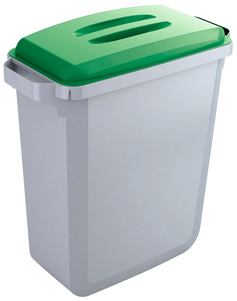 Wertstoffsammler inkl. grünem Deckel, Kunststoff, Volumen 60 Liter, 2 Griffe, BxTxH 590x282x645 mm, Farbe grau E6465773